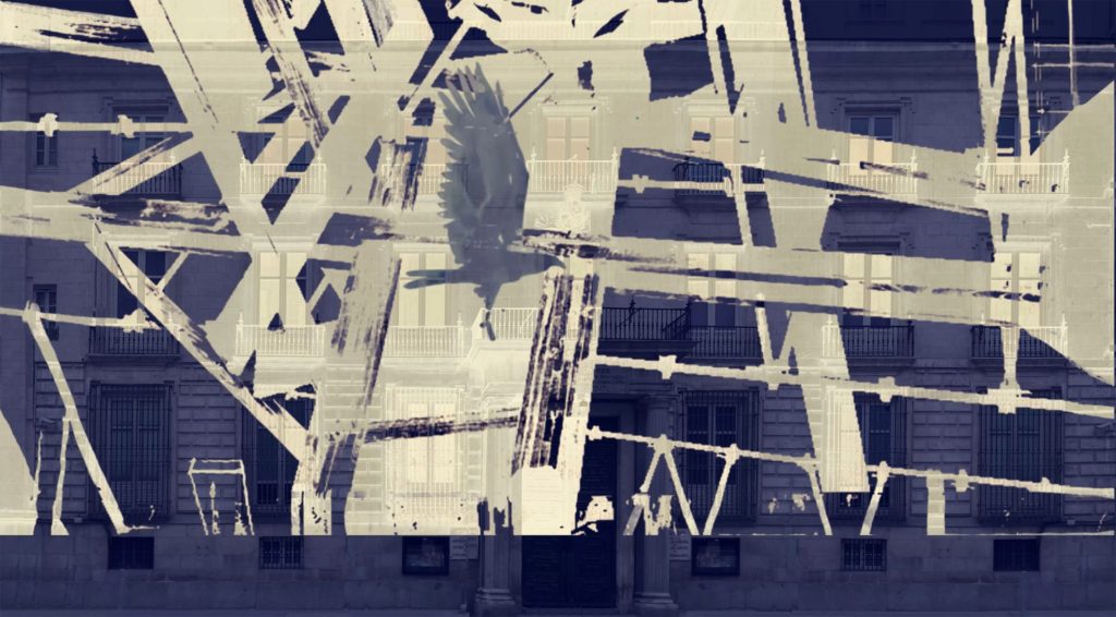 Con este proyecto, el artista revela una parte del contenido simbólico que se conserva en la Real Academia de San Fernando: los grabados de Goya, escogiendo los denominados Disparates, la serie más enigmática y críptica del pintor que esta institución atesora. Ángel Haro, buen conocedor de la pincelada y la obra de Goya, sobre la cual ya ha realizado antes producciones audiovisuales, las Doce Pinturas Negras, utiliza el frontal del edificio como un lienzo en blanco para dibujar una secuencia cuyo virado de color nos remite al grabado.