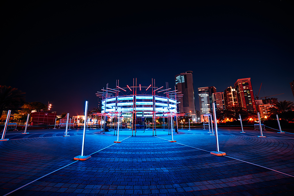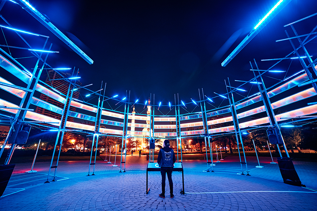 KONTAKT EXTENDED es una arquitectura en vivo en Plaza de España de Nicolas Paolozzi al frente de la productora Module que combina sonido, luz y movimiento. El público, arrastrado por los distintos estados de ánimo de la instalación, se sumerge en una marea cambiante de atmósferas. Es un proyecto interactivo que permite al público jugar a alterar ciertos aspectos de su comportamiento.