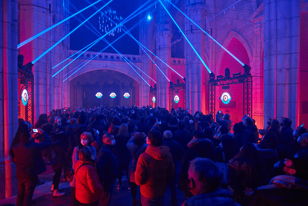 MIRADAS es una instalación inmersiva de luz de Studio&Light que, acompañada por la música, sitúa al espectador que la visita en el centro de atención, tratando de devolverle a través de la reflexión en el espejo, su forma de mirar. Pensada de manera explícita para el interior de la Iglesia de Santa Teresa y San José, en ella los artistas proponen que observemos atentamente y al tiempo nos dejemos observar.