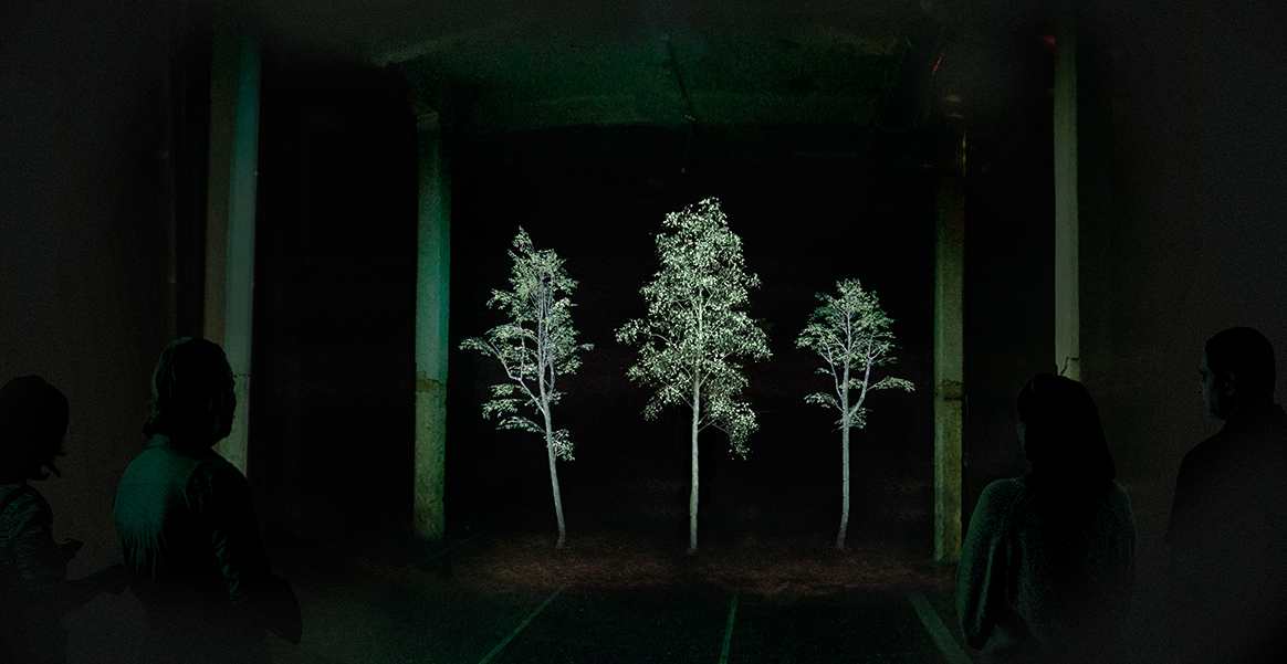 0x1genO es un proyecto instalativo, proyección lumínica y modelado 3D de la artista Paula Cremades que invita al público a ver transformado el espacio de DiMad en un invernadero con tres árboles virtuales plantados sobre el suelo infértil de la sala. La obra se comprende en el marco de la crisis climática que estamos sufriendo en la actualidad.