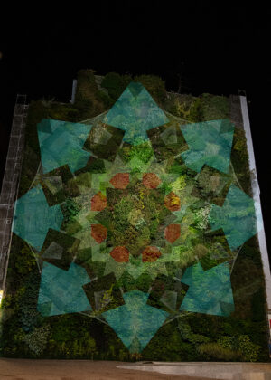 FLORESTA DE CRISTAL es una reflexión sobre la naturaleza como inspiración para la arquitectura. La fotógrafa Rosa Muñoz parte de un trabajo previo de narrativa fragmentada cuyo resultado concluye en elementos geométricos que proceden del estudio de arquitecturas abandonadas en Madrid. Estas formas son las piezas de un puzzle que la artista traslada al jardín vertical de CaixaForum para recrear un escenario que nos trae a la memoria vidrieras florales con reminiscencias góticas.