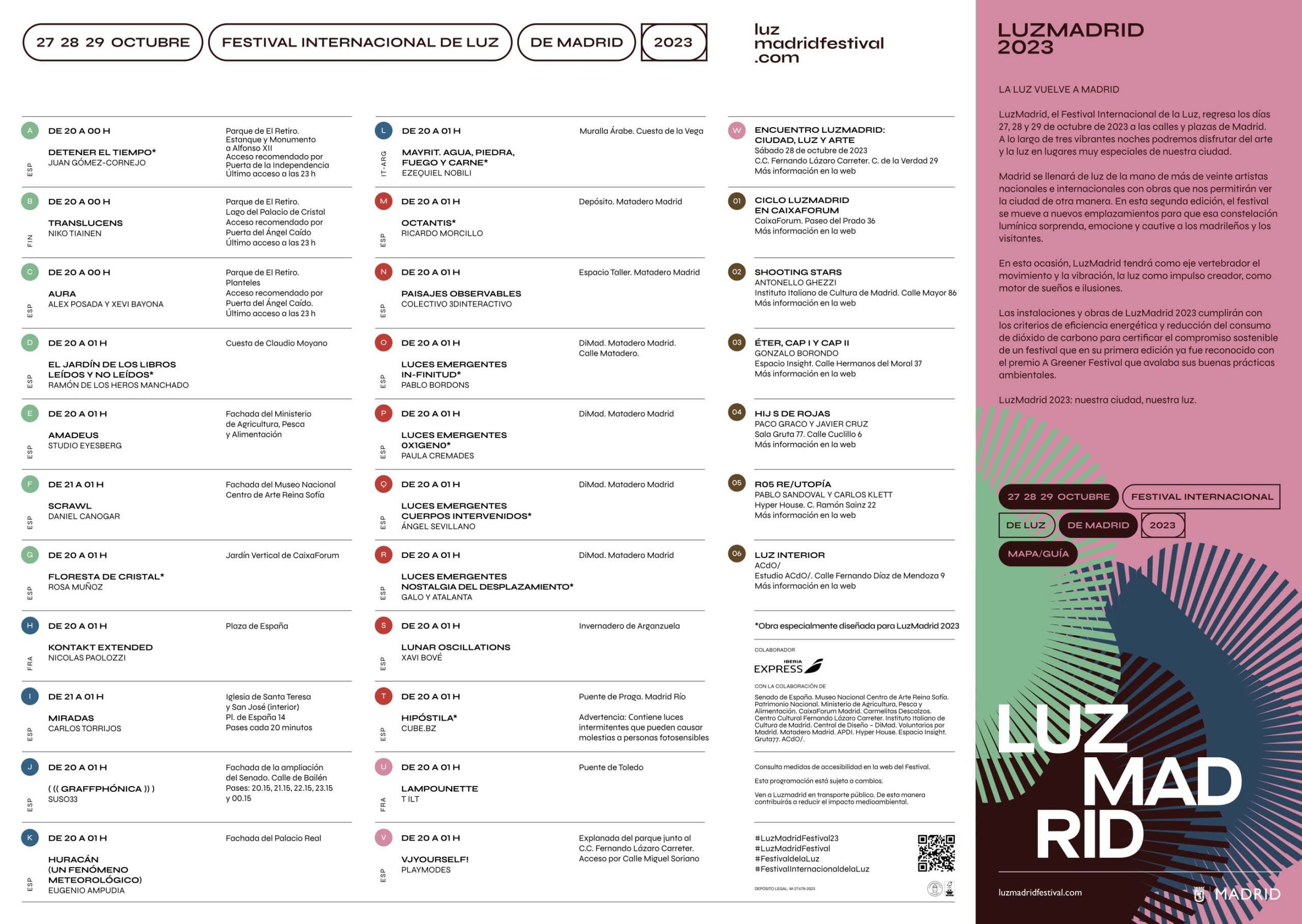 Tres días de festival con más de 20 instalaciones lumínicas repartidas por toda la ciudad, talleres, exposiciones, mesa redonda, pases accesibles, debates… La ciudad de Madrid da por finalizada la fiesta de la luz.
