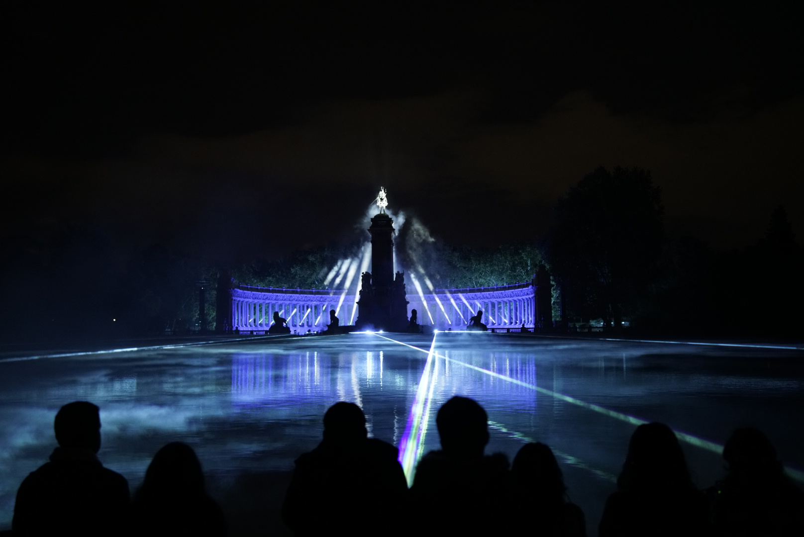 DETENER EL TIEMPO es la propuesta de Juan Gómez-Cornejo para el Monumento de Alfonso XII en el Parque de El Retiro. El creador, de la mano de Illusion Stage, utiliza la fusión de música y luz para esculpir el aire, tejer el agua y habitar los sueños. Una creación que dialoga con los autores originales del monumento con el objetivo de aprehender lo imposible.
