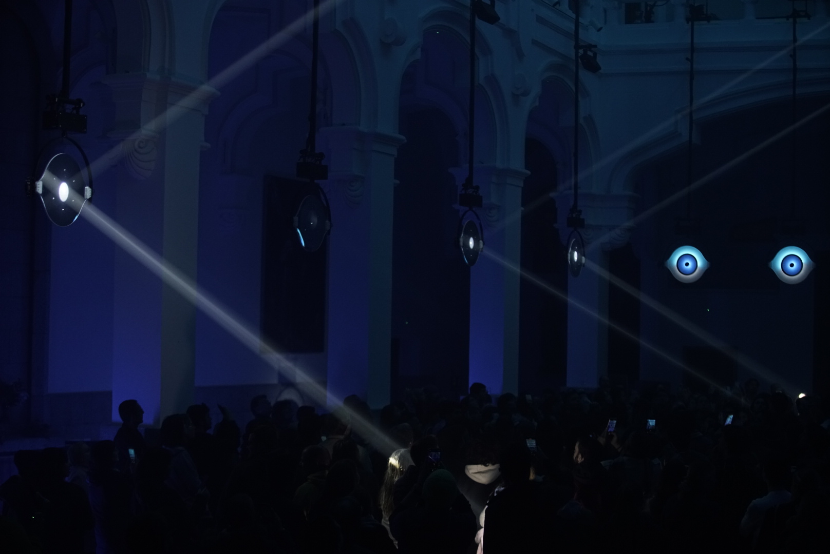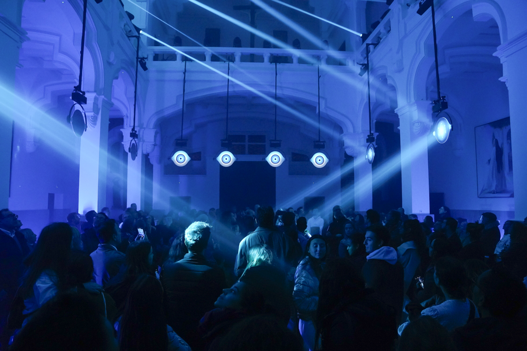 LUNAR OSCILLATIONS es una intervención lumínica y sonora contemplativa sobre la percepción en un entorno variable, un universo de estrellas y lunas dinámicas. La obra de Xavi Bové se basa en la influencia que ejerce la luna sobre los mares, océanos y seres vivos explorando las sensaciones que el individuo experimenta mediante la transformación del espacio con un juego de luces y sombras en movimiento.