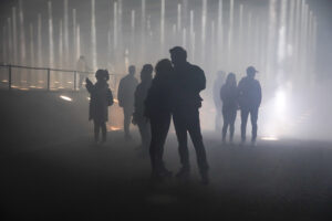 TRANSLUCENS, del artista finlandés Niko Tiainen, es una proyección holográfica sobre una cortina de agua acompañada por un diseño de sonido estéreo. La instalación, en el Estanque del Palacio de Cristal del Retiro, conversa con la teoría matemática de las estructuras que tienen formas biológicas ligeras y concretas a través de la combinación de diferentes visuales creando un efecto Kuleshov: la audiencia construye el guion real en sus mentes.